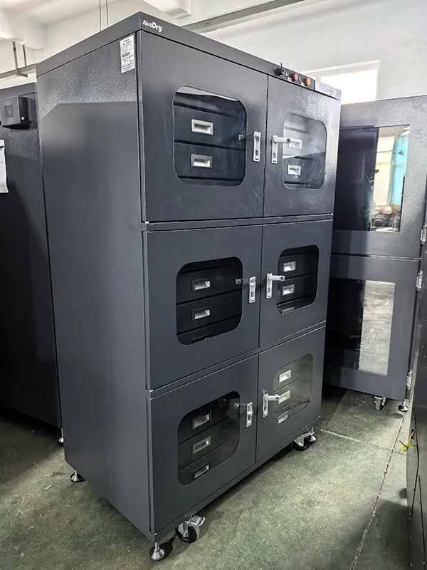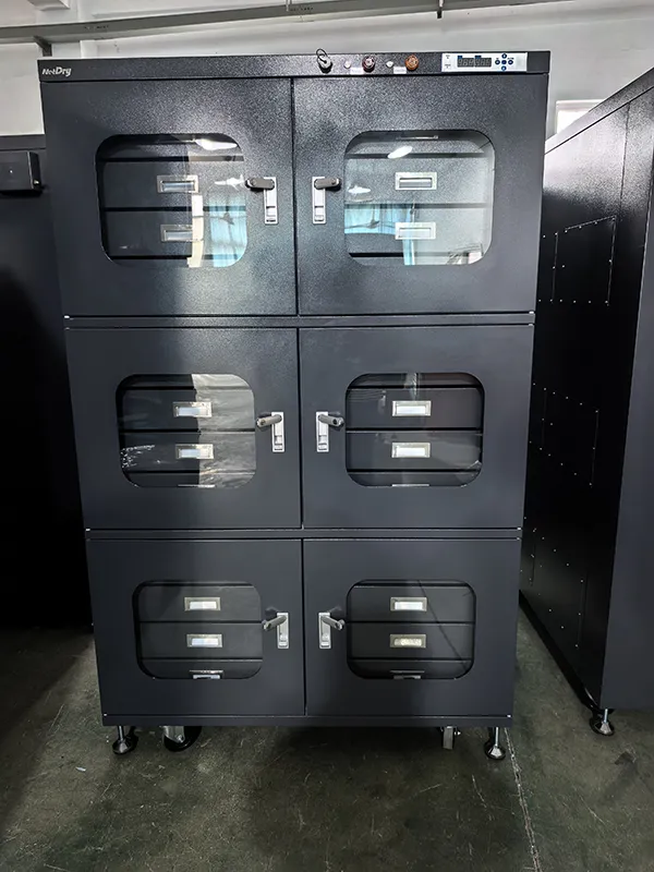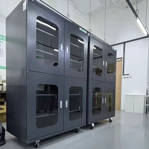 Os gabinetes à prova de umidade NetDry são projetados para armazenar componentes eletrônicos - como PCBs, PCBAs, magazines de PCB, capacitores e resistores, etc. Em particular, os pacotes de PCB que foram abertos, mas não totalmente utilizados nas linhas de produção SMT devem ser imediatamente colocados em um gabinete à prova de umidade para preservar sua integridade e prolongar sua vida útil. Os gabinetes secos eletrônicos NetDry seguem o padrão J-STD-033D, fornecendo um ambiente de baixa umidade para proteger seus valiosos produtos.
