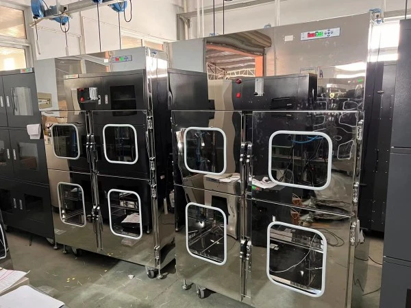 Todos os armários secos e câmaras climáticas são cuidadosamente inspecionados pela equipe de controle de qualidade e calibrados antes de serem entregues, o que garante que tudo funcione bem quando os clientes os receberem.